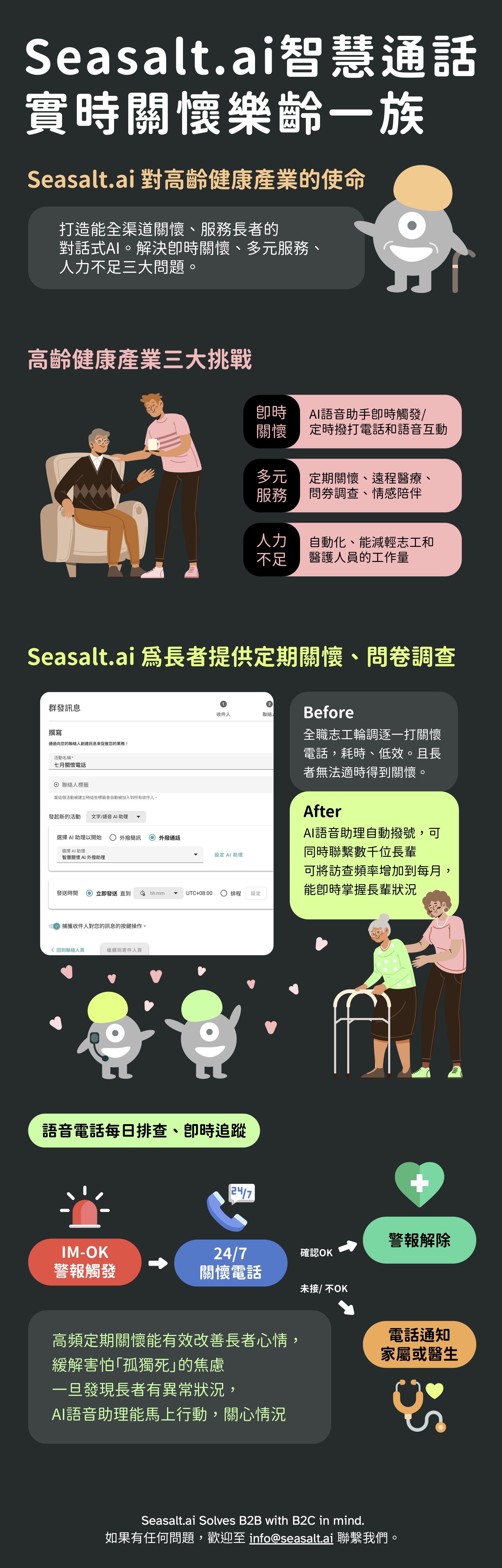 With the growing aging population, elderly care institutions worldwide face numerous challenges. Especially concerning regular care and health monitoring, which not only require significant human resources but often lead to the inability to detect potential problems in time due to neglect or delay. This is the challenge faced by a social service agency in Singapore, a partner of Seasalt.ai. The agency conducts annual phone check-ins with thousands of seniors, a process that is cumbersome and difficult to manage effectively. To address this issue, they introduced SeaX, which significantly improved the quality and efficiency of care services through AI technology.